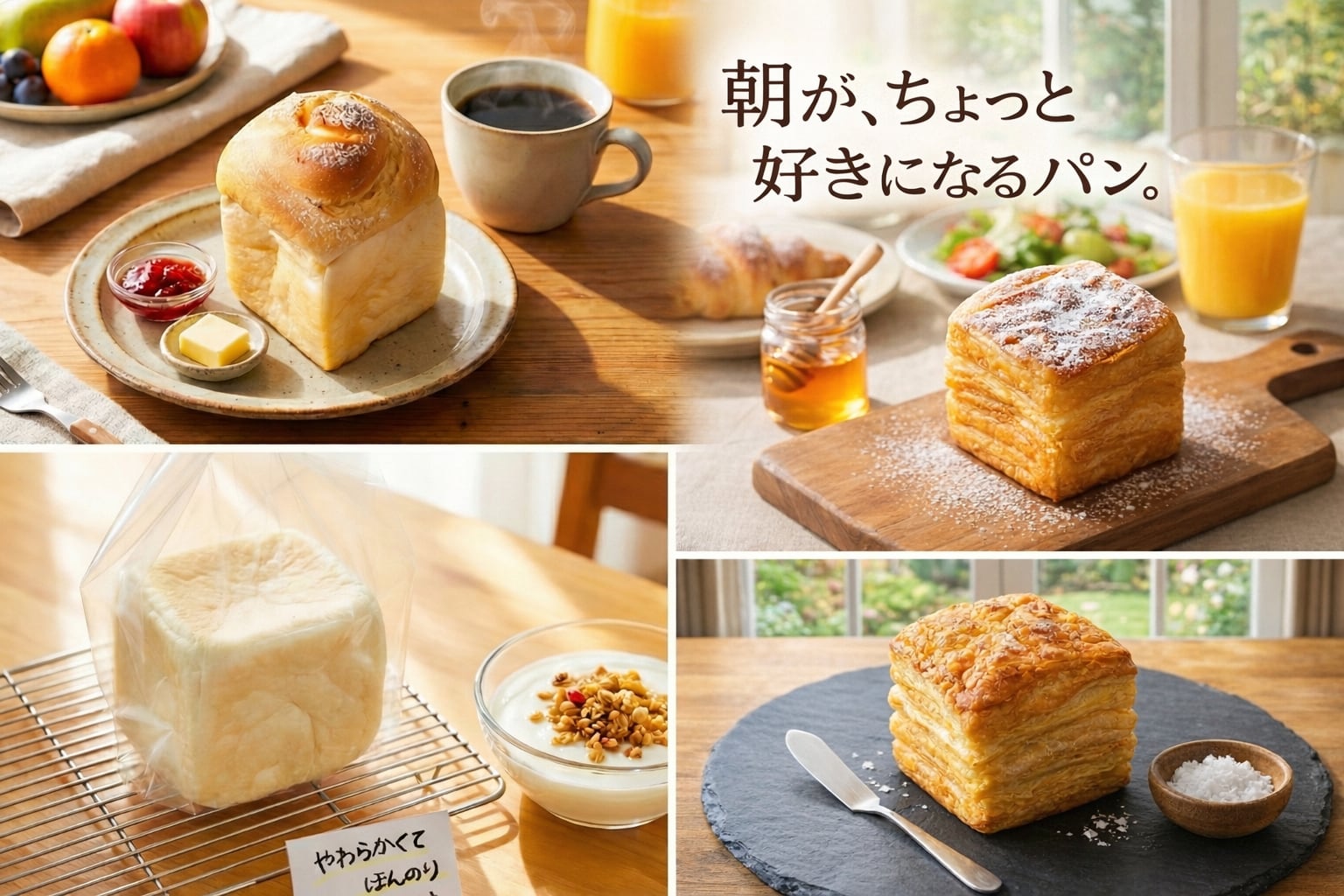 朝食用キューブパンセット(プレーン)|1日の始まりが楽しみになる ~ 生地自慢のセット」(4種9個いり)
